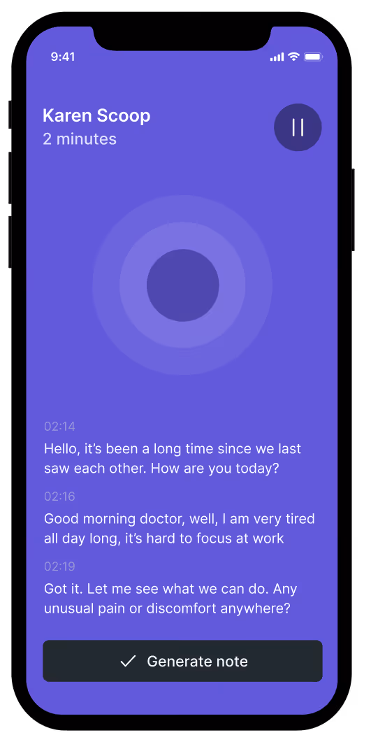 Instantly generate accurate clinical notes leveraging ambient listening and dictation.